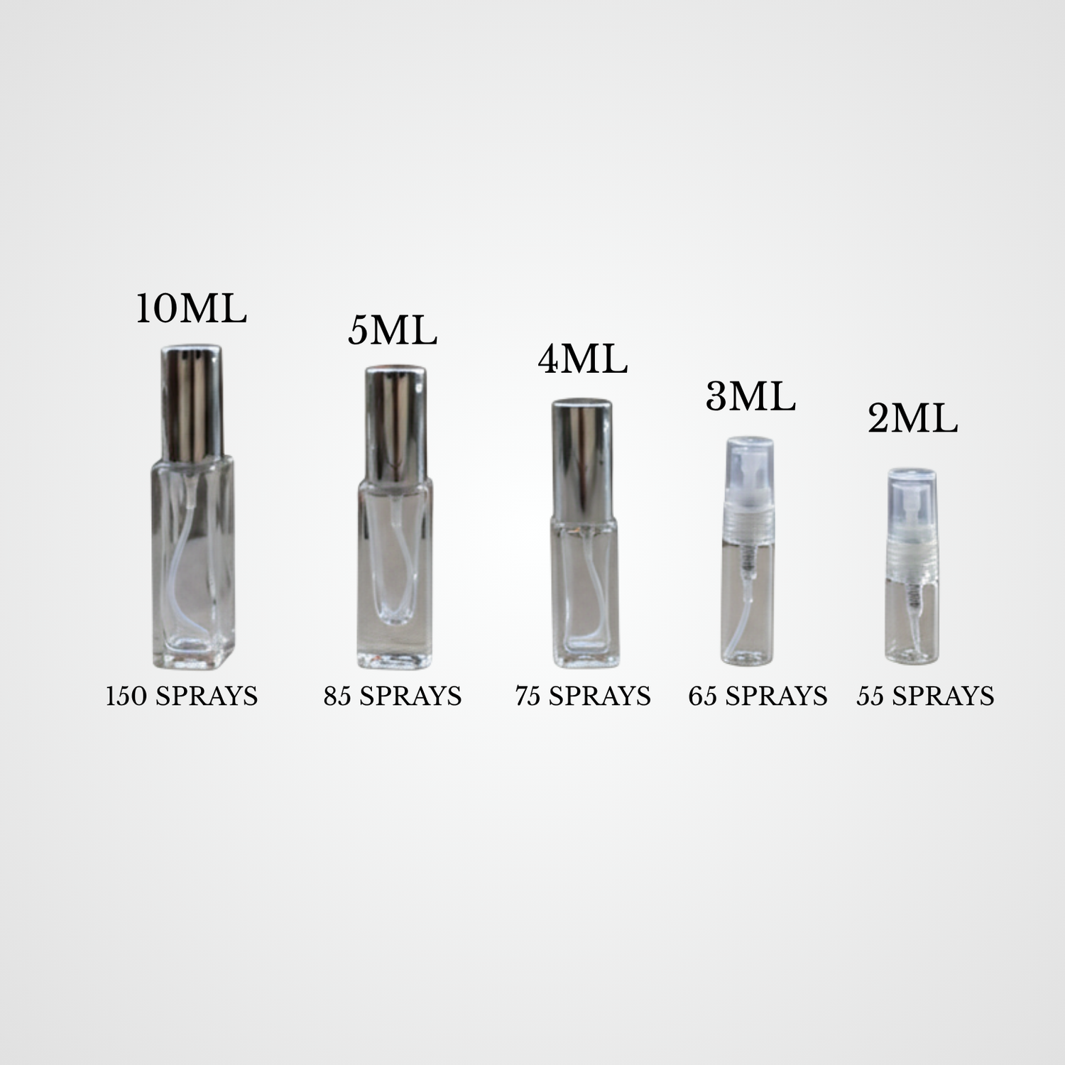 Disponemos de formatos de 2, 3, 4, 5 y 10 ml para adaptarnos a cada necesidad: probar, viajar o disfrutar tu fragancia favorita por más tiempo.